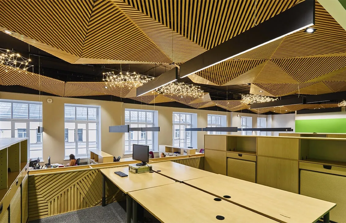 Волнообразная система кубообразного потолка может использоваться в различных типах помещений, таких как офисы, рестораны, гостиницы, торговые центры. Она может быть использована как декоративный элемент, чтобы добавить интерес и стиль в интерьер.