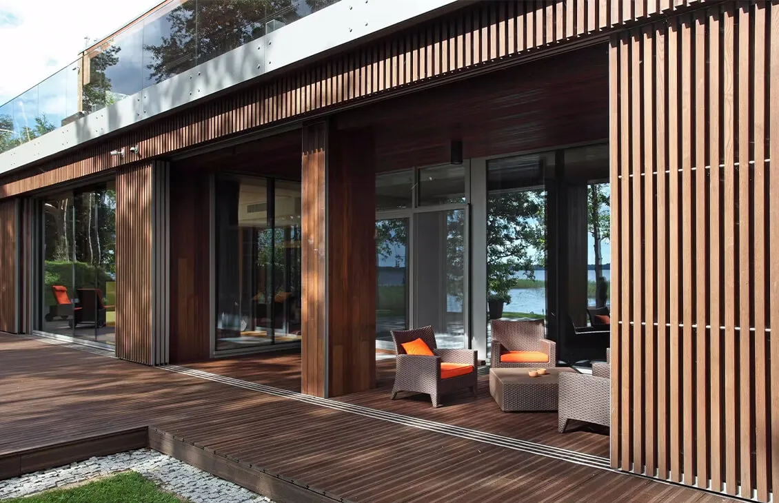 Такой дизайн фасада может быть использован как для жилых, так и для коммерческих зданий и интерьеров. Он создает впечатление современности, сдержанности и оригинальности.