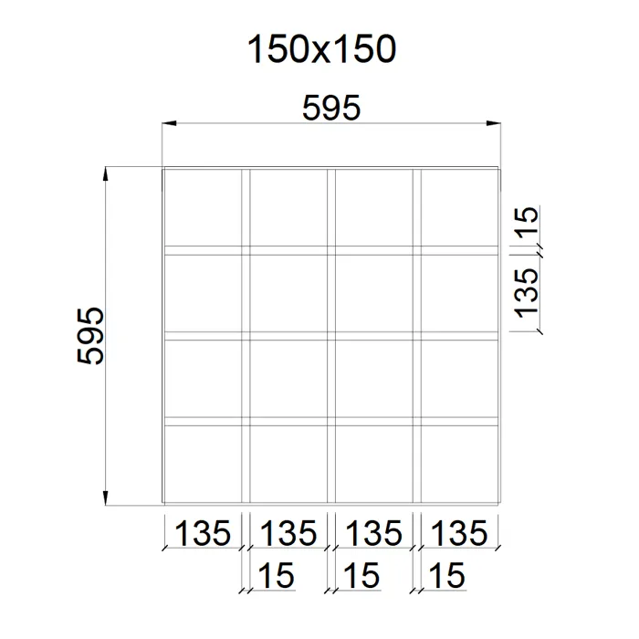 Грильято GL-15 150x150, высота 37 мм, ширина 15 мм, графит матовый — подвесной потолок с решетчатой конструкцией, выполненный из алюминия с графитовым матовым покрытием. Ячейки размером 150x150 мм и профиль высотой 37 мм придают потолку лёгкость и чёткие геометрические линии. Графитовый матовый цвет придает потолку стильный и элегантный вид, улучшая освещенность и добавляя помещению современную атмосферу.