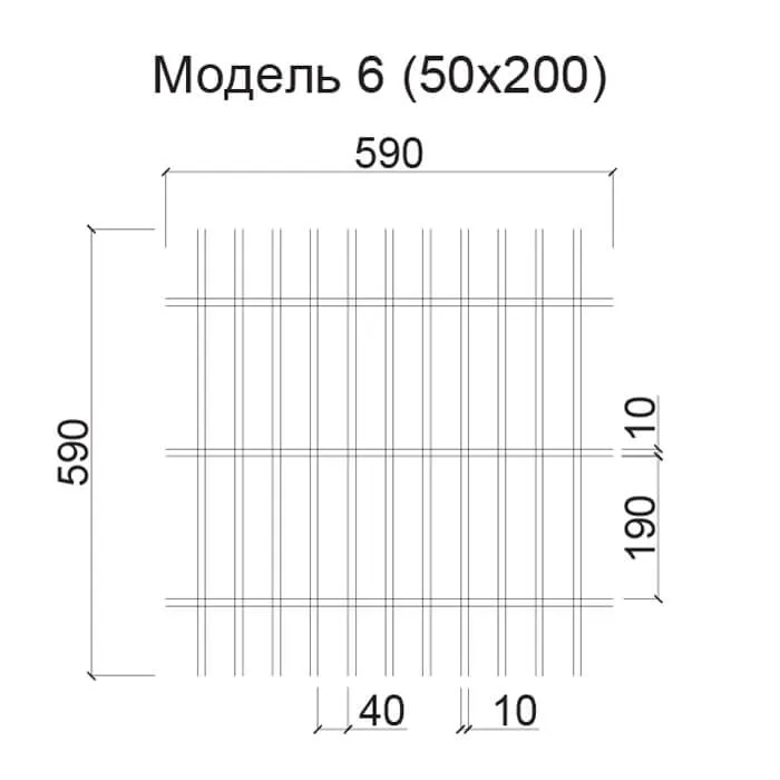 Грильято Нестандартная ячейка Модель 6, ячейка 50х200 мм, окраска по RAL, высота 40 мм, ширина 10 мм — это потолок с уникальной конструкцией, который сочетает в себе прочность, долговечность и возможность настройки цвета для идеального сочетания с интерьером.
