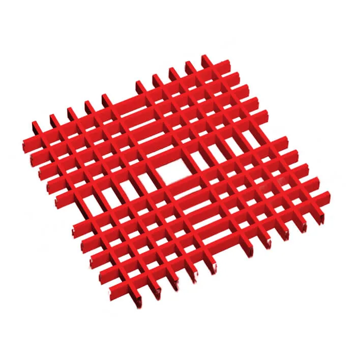 Грильято Нестандартная ячейка Модель 8, ячейка 50х50х100 мм, окраска по RAL, высота 50 мм, ширина 10 мм — это потолок с открытой конструкцией, который сочетает в себе прочность, долговечность и возможность настроить цвет для идеальной интеграции с интерьером.