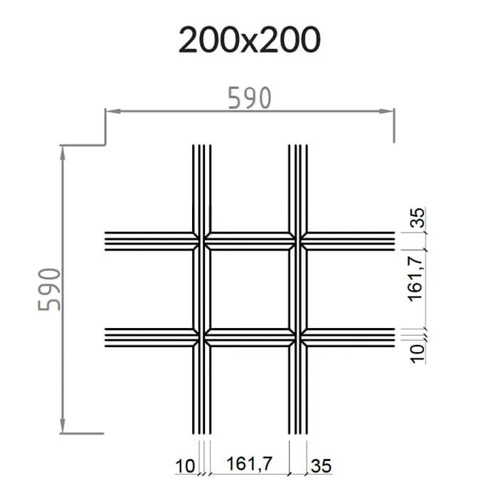- Размер ячейки: 200х200 мм — улучшенная вентиляция и визуальное расширение пространства.