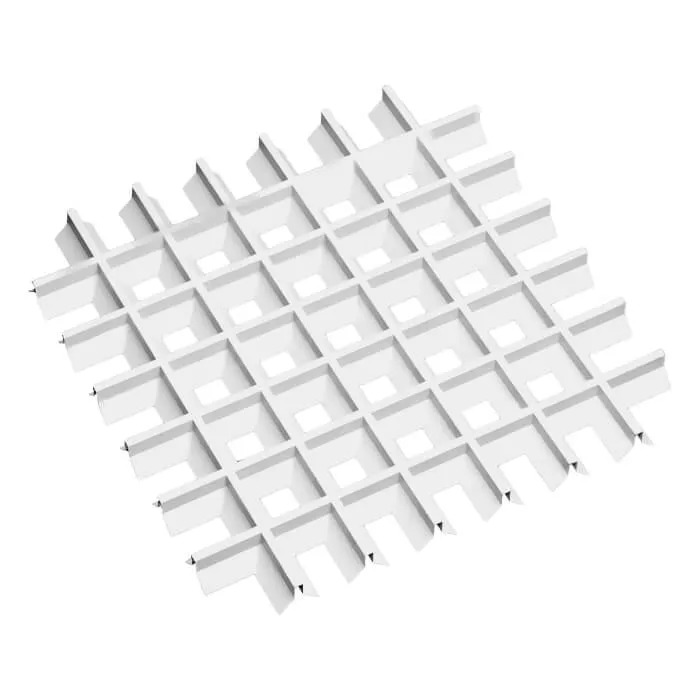 Грильято Пирамидальная ячейка 86х86 мм, белый матовый, высота 42.5 мм, ширина 10 мм — это потолок с открытой конструкцией, который сочетает в себе прочность, долговечность и стильный минималистичный дизайн.