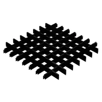 Грильято 60x60, высота 50 мм, ширина 10 мм, черный — это подвесной потолок с открытой решетчатой структурой, выполненный из прочного алюминиевого профиля. Крупные ячейки 60x60 мм создают эффект визуальной лёгкости, а высокий профиль 50 мм делает конструкцию глубокой и объёмной. Широкий профиль 10 мм придаёт потолку монолитный вид, делая его более массивным и выразительным.