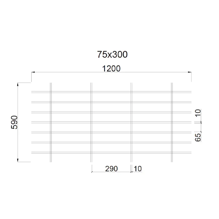 - Размер ячейки: 300x75 мм — крупные ячейки для улучшенной вентиляции и увеличения пространства.