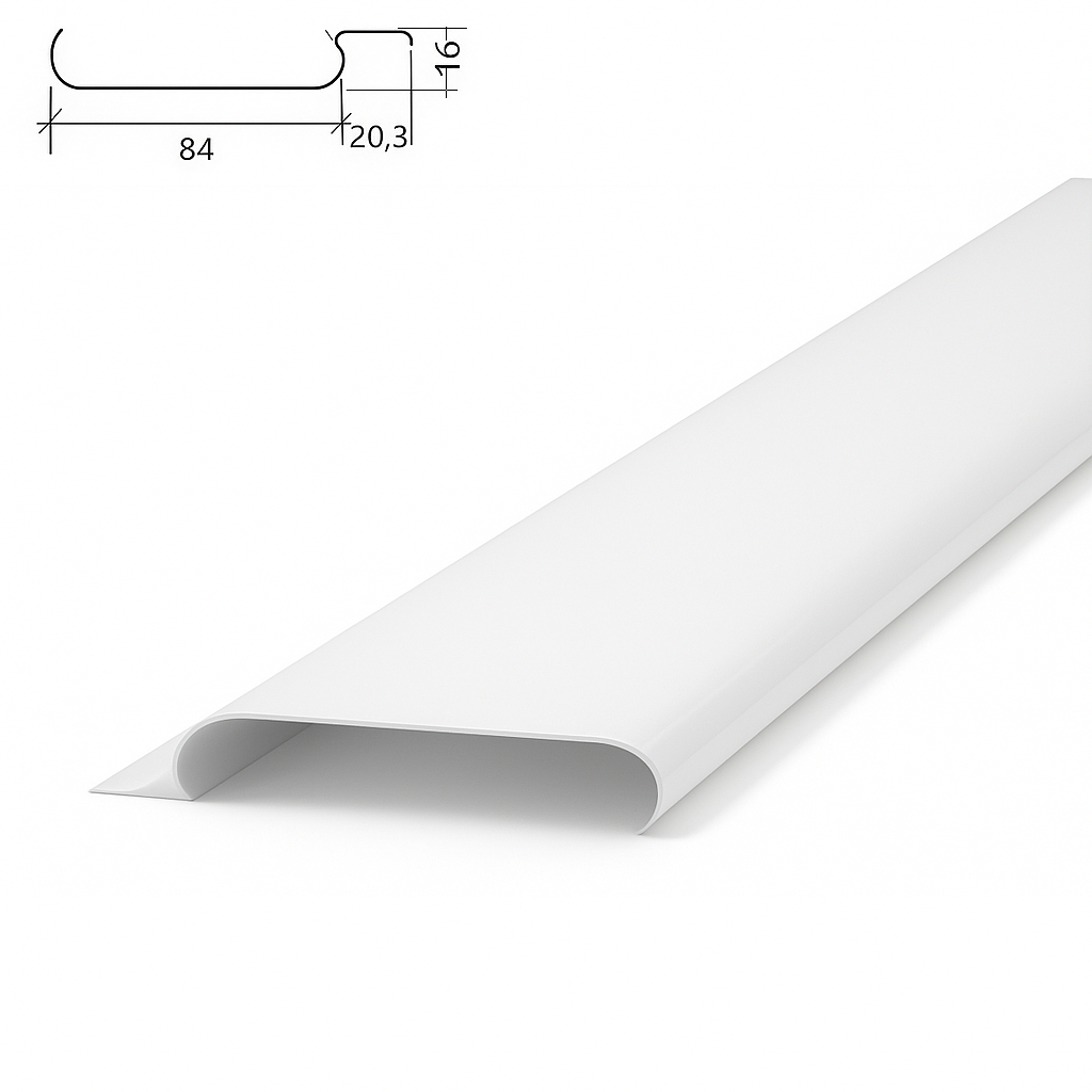 A84AC белый — алюминиевая потолочная рейка с шириной 84 мм и шагом установки 100 мм. Модель выполнена в классическом белом цвете и оснащена системой закрытых стыков. Обеспечивает ровную, цельную потолочную поверхность без зазоров. Идеальна для офисов, учреждений, ТЦ и деловых пространств.