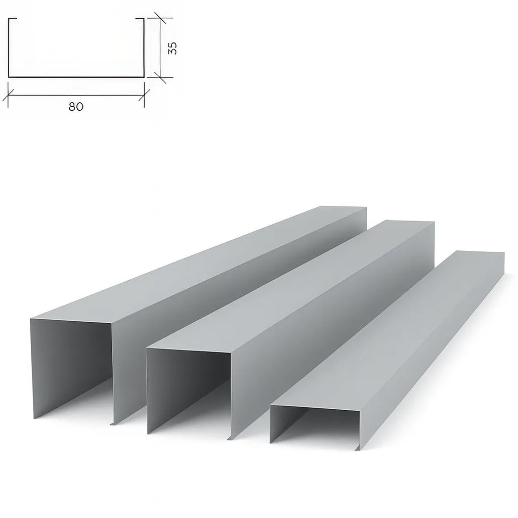 Рейка кубообразная Албес A80/35S металлик — практичный выбор для современных интерьерных потолков с индустриальной эстетикой.