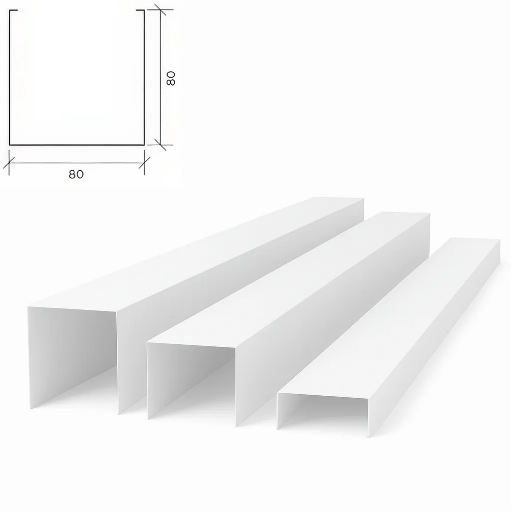 Рейка кубообразная Албес A80/80S белый матовый — архитектурный профиль с выразительной геометрией 80×80 мм, выполненный из алюминия или оцинкованной стали. Используется в составе потолочной системы A100S и окрашен стойкой белой порошковой краской.