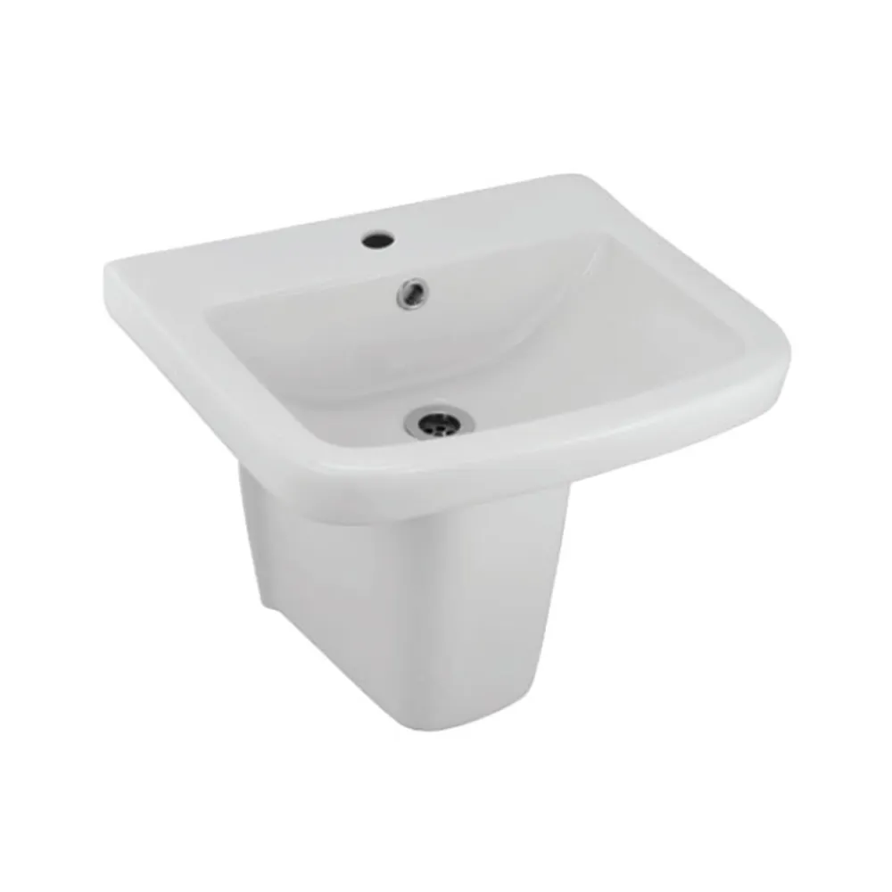 Полупьедестал выполнен из прочной санитарной керамики Vitreous China (VC) с белым глазурованным покрытием, устойчивым к влаге, загрязнениям и бытовой химии.
