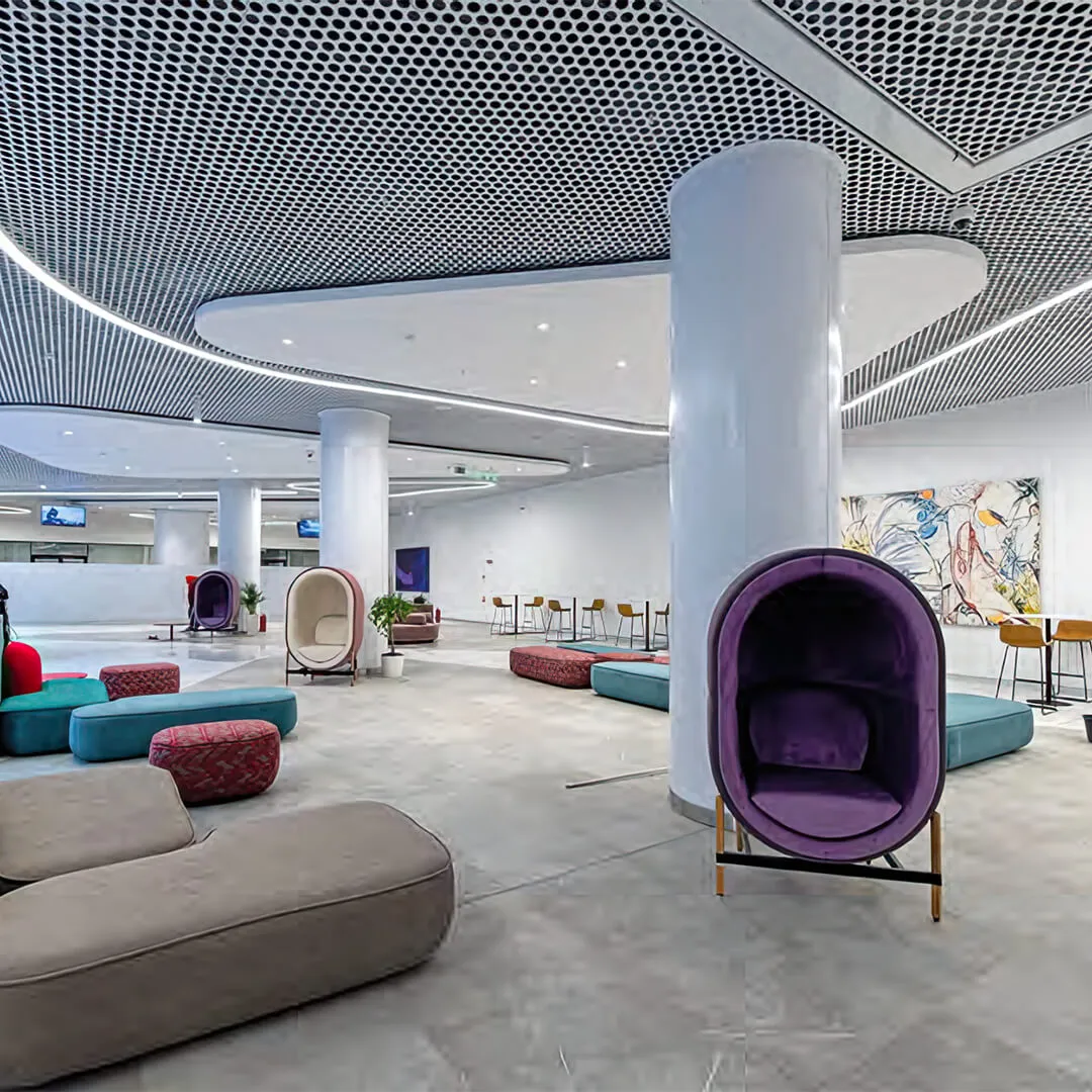 • Акустические панели: обеспечивают улучшенную звукоизоляцию и комфортную акустическую среду.