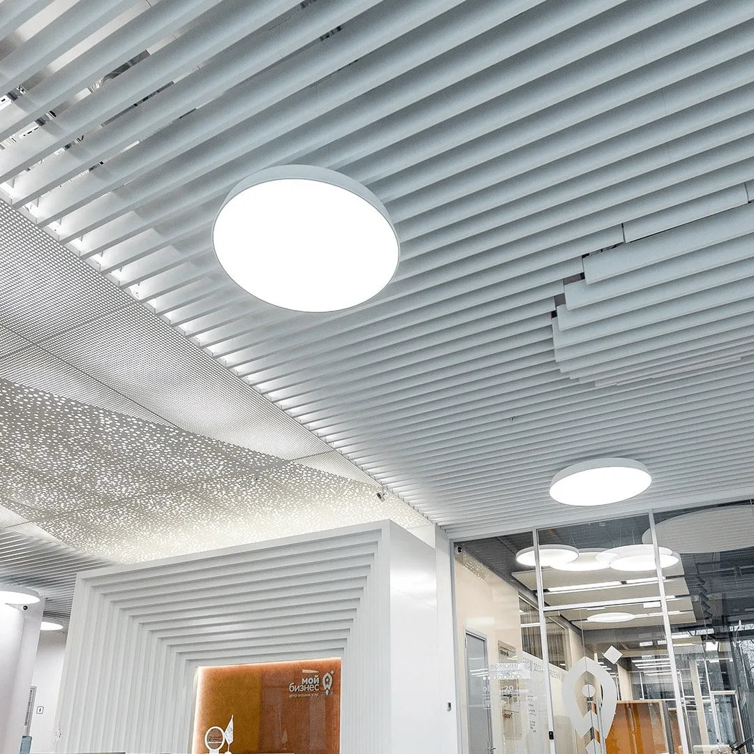 - Himmel Aero: реечные потолки, предназначенные для общественных пространств, таких как офисы, аэропорты, спортивные комплексы и торговые центры. Отличаются простотой монтажа, легкостью в уходе и экономичностью при реализации крупных проектов.